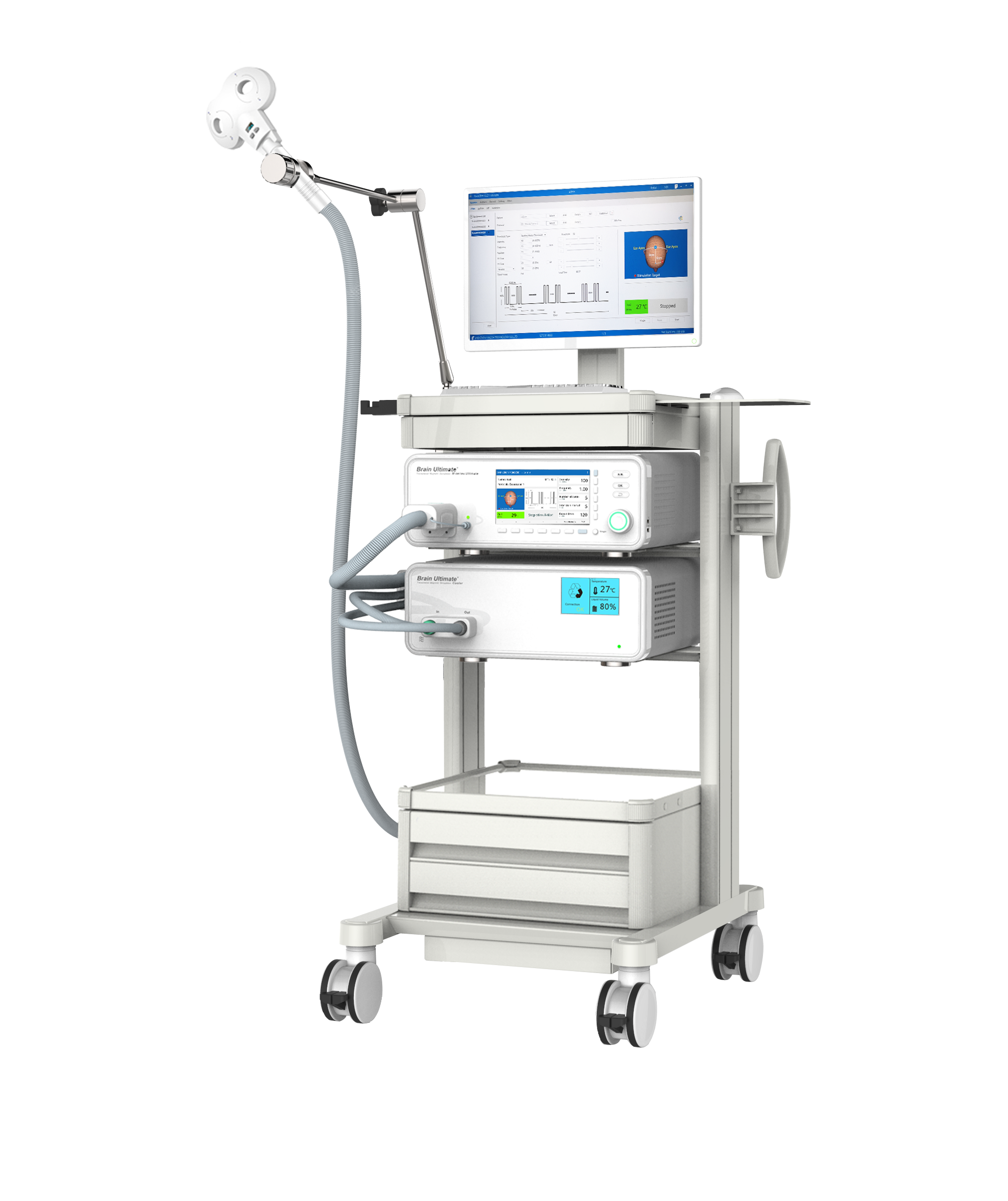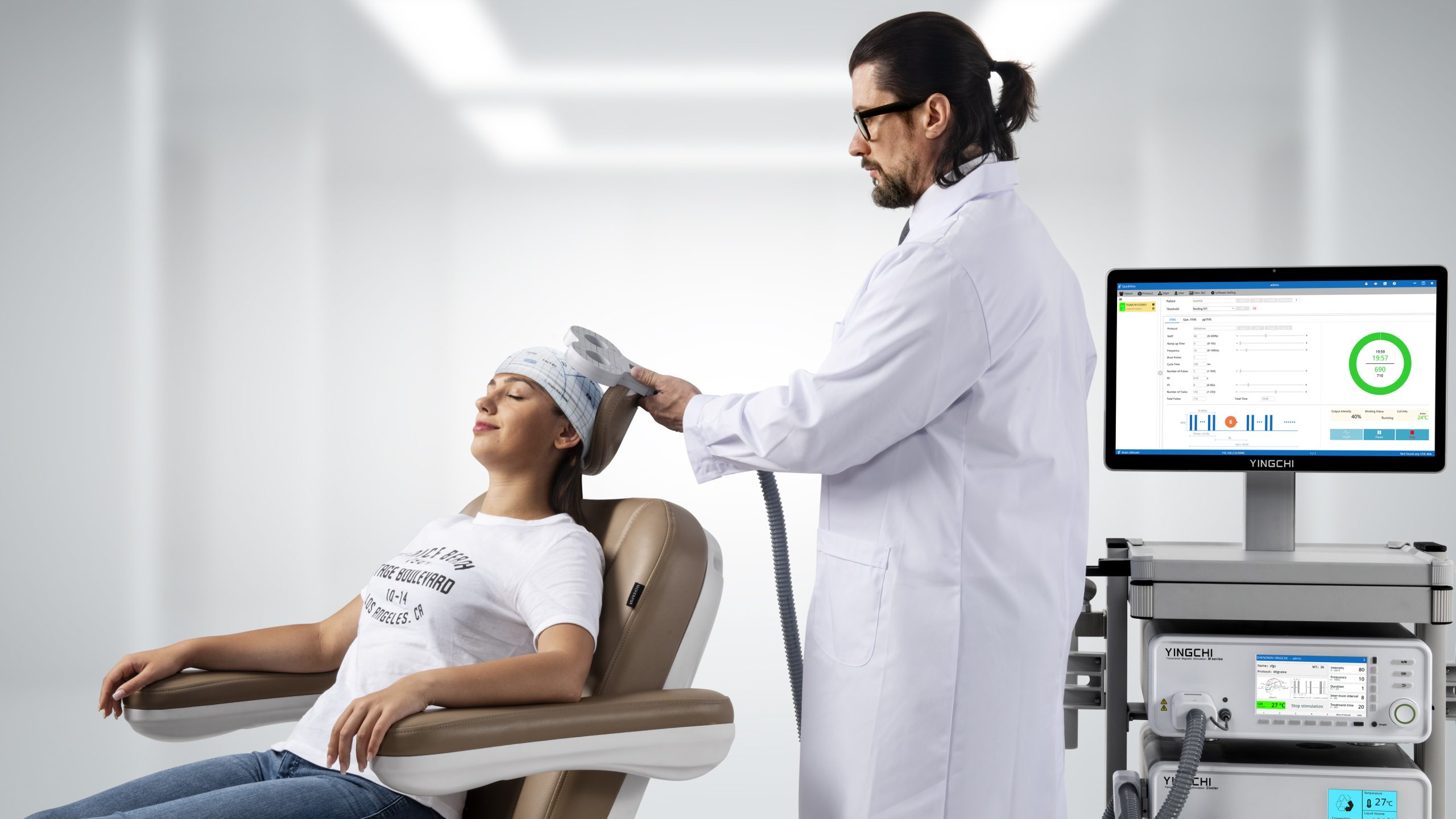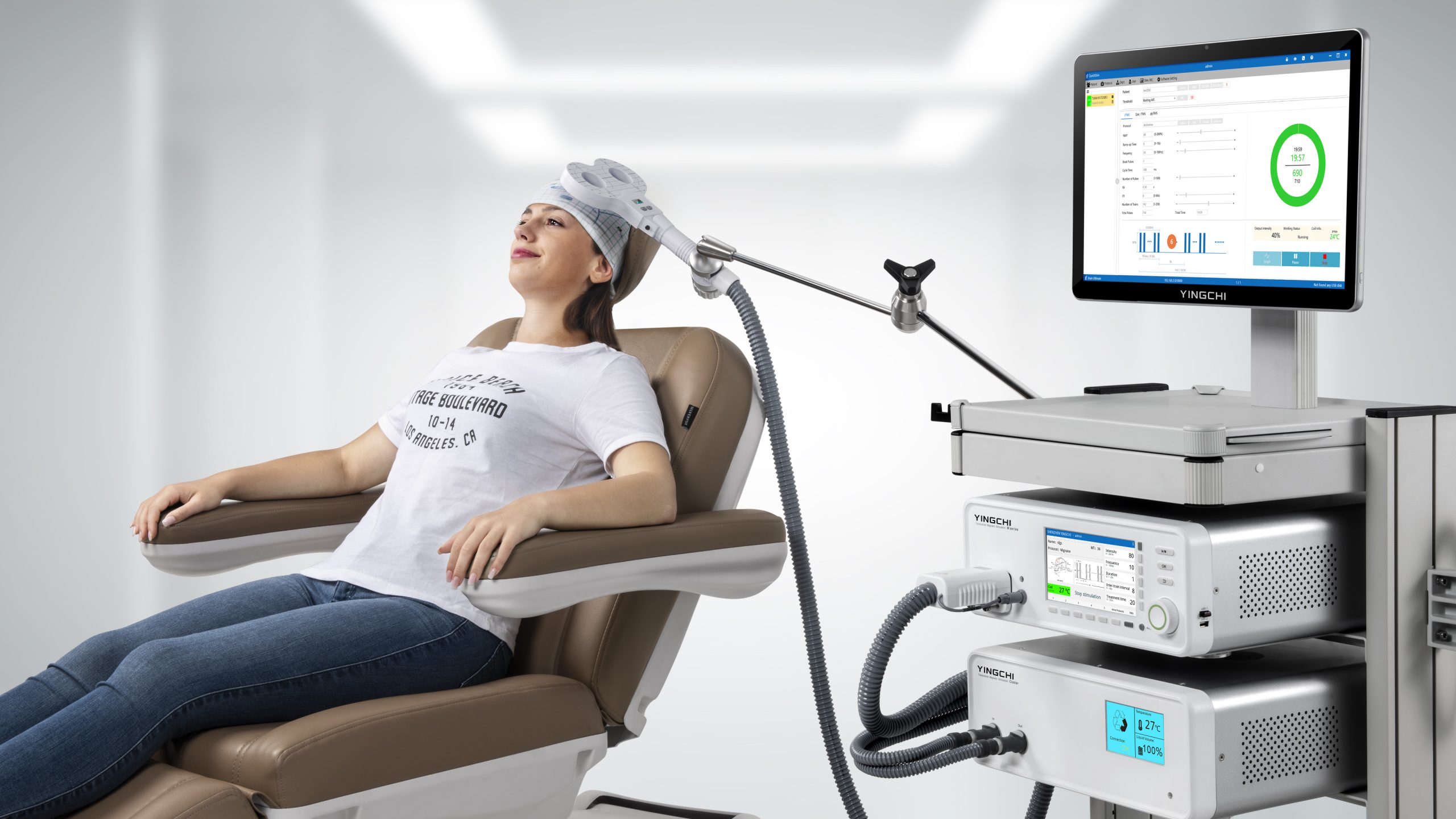 Máy từ trường xuyên sọ của hãng YINGCHI đạt tiêu chuẩn CE, FDA với hơn 80 giao thức điều trị tích hợp sẵn được FDA phê duyệt.